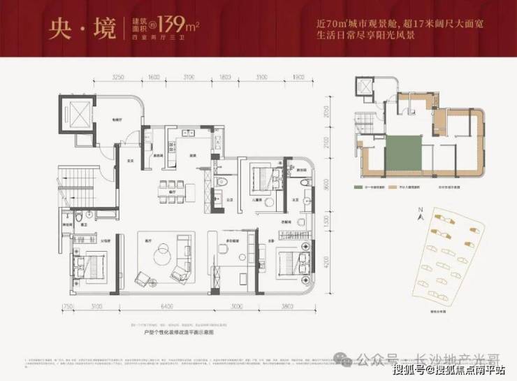139㎡观景舱:得房率超110%,套内面积约154.5㎡,客厅6.4米,17米大面宽,瑜伽、种花、晒太阳,简直是梦想中的生活。