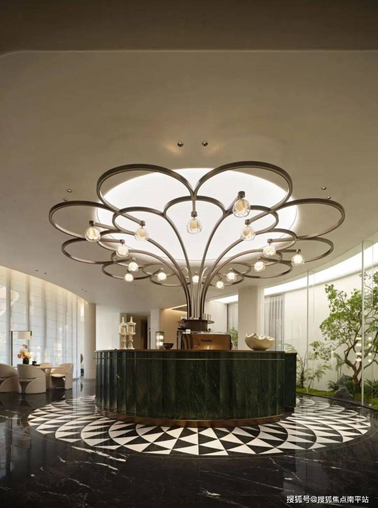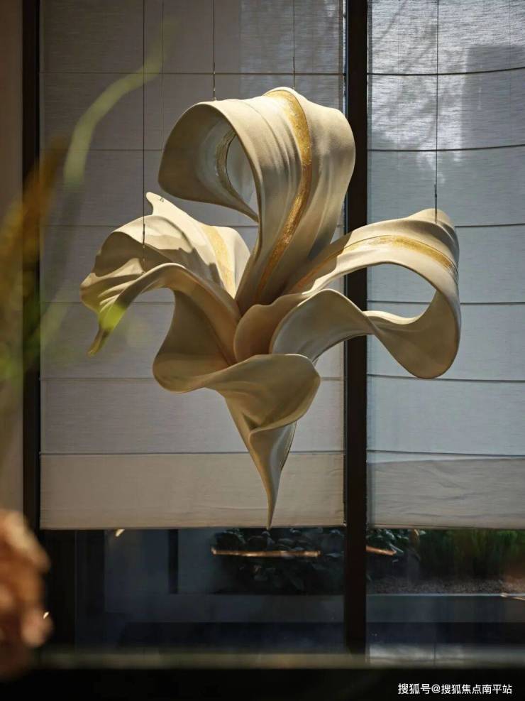 艺术装置源于中国传统花卉纹样,结合漆艺、银箔等工艺,让艺术背后的吉祥寓意和文化价值在空间中得以传承,实现城市文脉厚重感与现代艺术灵动感的交织共生。