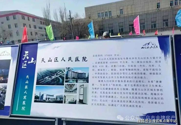 约6万平方米的天山区人民医院(2021年动工建设),总投资约37600万元,总建筑面积6万㎡,拟设床位450张,设置门诊部、住院部(外科、内科、儿科、感染科)、检验、放射等辅助科室,填补了片区缺少医院配套的空白。