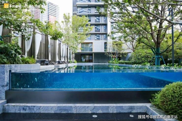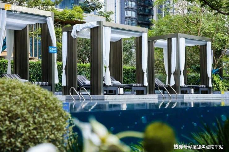 在悦府一期园区内看到,茂密绿植环抱的“水上卡座”隐藏在树荫间,室内会客厅内,发光玉石背景墙与定制家具相得益彰,仿佛在都市中开辟出一片“生态绿洲”。