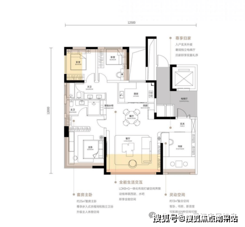 项目占地面积12295.99㎡,建筑面积43620.8㎡,容积率约2.52,规划有226户,车位配比1:1.04。项目4栋楼由高层和小高层组成,均是两梯两户,每栋楼都只有一个户型,1-3号楼1个单元,4号楼2个单元。1,2,3号楼均是适合多代同堂改善家庭的大三居或四居,4号楼两个单元是相对小一点更适合一家三口的改善户型。