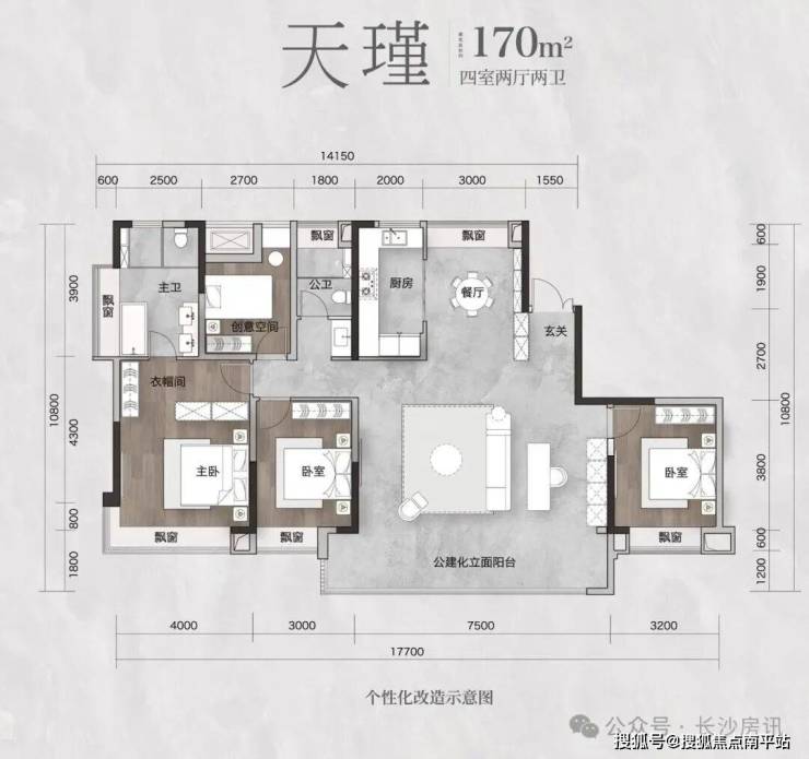 约120-139-170㎡环幕宽居 墅质平层私邸项目规划建筑面积约120㎡、139㎡、170m²户型,以“巨幕大横厅+多开间朝南+主卧套房+270度景观飘窗” ,将高定理念渗入每一处空间,完美演绎中国进阶家庭的生活尺度与品位。