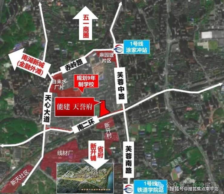 纵横交通:黄金十字中轴,南侧城市主动脉南二环,东临“黄金政经大道”芙蓉路;距1号线涂家冲站和铁道学院站直线约700m。