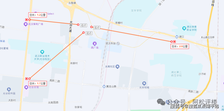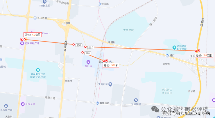 项目与关山大道保利时代广场、光谷K11直线距离约1.2公里,与光谷天地直线距离约1.7公里,位于商圈辐射范围内,与国创汇山姆会员店直线距离约2公里。更多的还是得依赖光谷东的新兴商业,例如光谷大悦城、光谷创新天地、规划的光谷天街等。