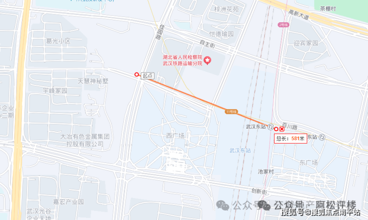 地铁方面:招商原颂与地铁2、11号线的换乘站武汉东站直线距离约600米左右。不过项目紧临的是武汉东站西广场,而2号线和11号线都在武汉东站的东广场,如果坐地铁需要从西广场穿过火车站至东广场,或者走自主街-百川路绕行到东广场,实际步行距离要远一些。