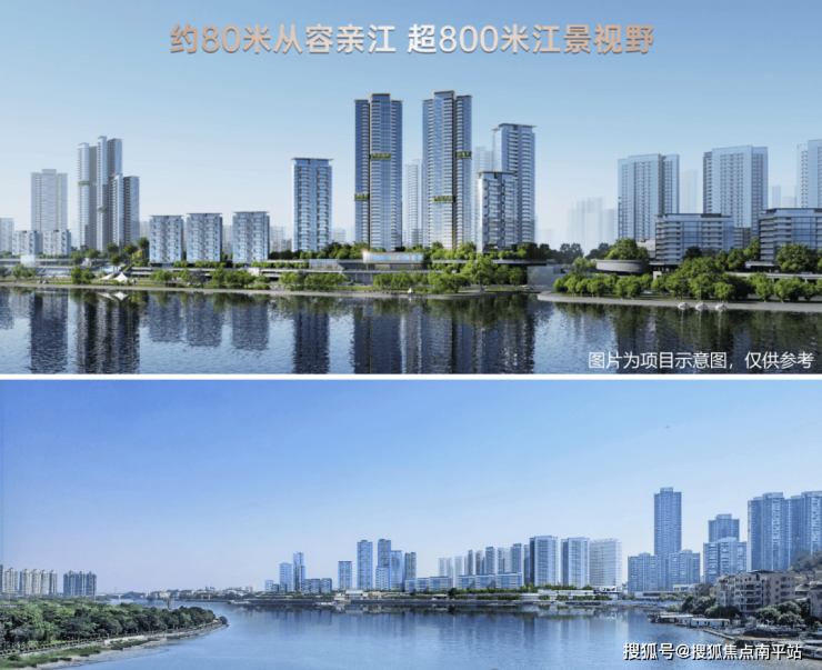 江面最宽达800米:项目私享约1000米的阔绰江岸线,约800米巨幕江面(远超侨鑫汇悦台江面400米,天誉半岛320米左右)。