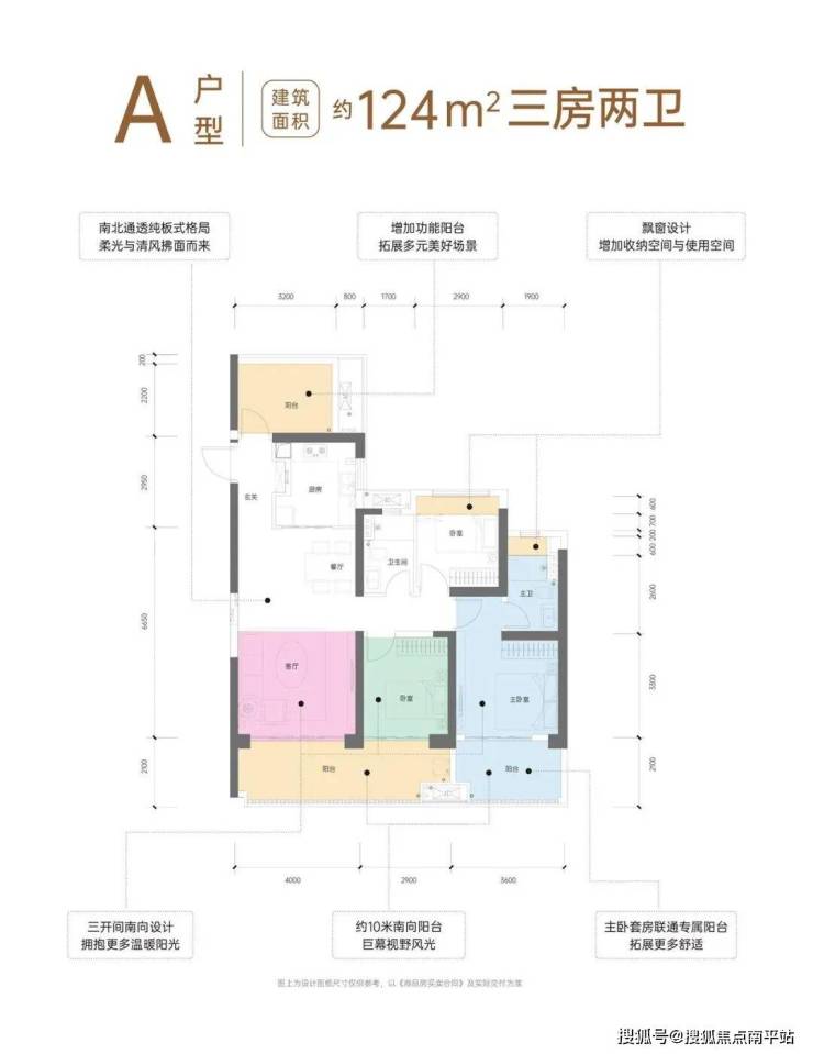 三房户型配备约10米南向阳台,客厅、主次卧三开间朝南并享阳台空间,拓展更多美好。