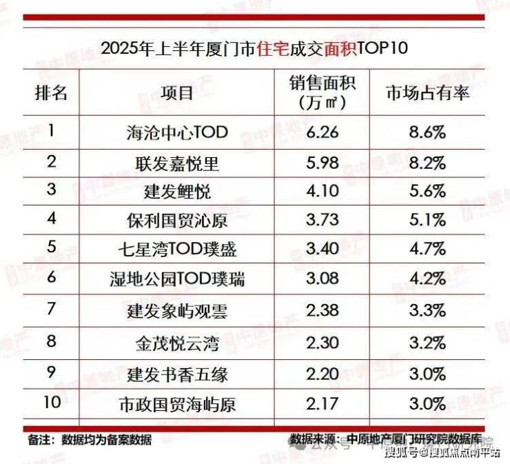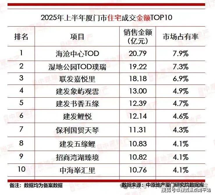 厦门新盘依然是国企的主场,2025年上半年新盘成交前三的房企:建发、轨道、国贸。