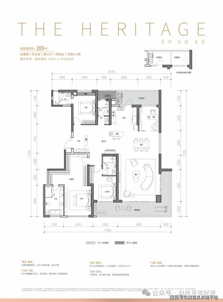 【283㎡户型鉴赏】:约17.6米转角大阳台,BLDK寰幕瞰江竖厅,双主卧+男女主人双衣帽间,礼呈家族岁月
