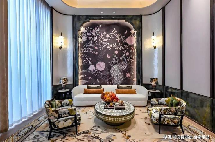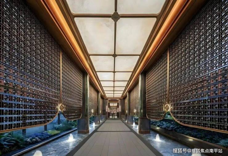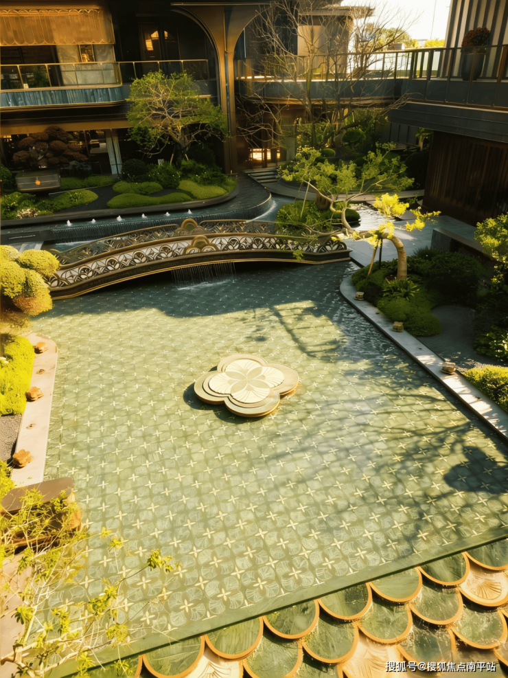 以海派园林为核心,立体山水画卷理念,借鉴菽庄花园藏海借景之精髓,匠心打造“立体山水画卷”。中央水院、水上浮桥、悬浮回廊,构筑多维观景动线;下沉花园、花间雅台、星光露台错落有致,串联会所主入口、地下光厅与风雨连廊。灵石肌理、木质、金属骨架,光影与水景交织,尽显雅致。