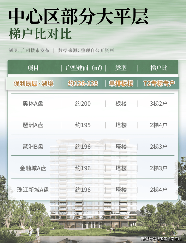 即便纵观广州中心四区,都很难找出有湖有山,还是专梯专户的同面积户型。