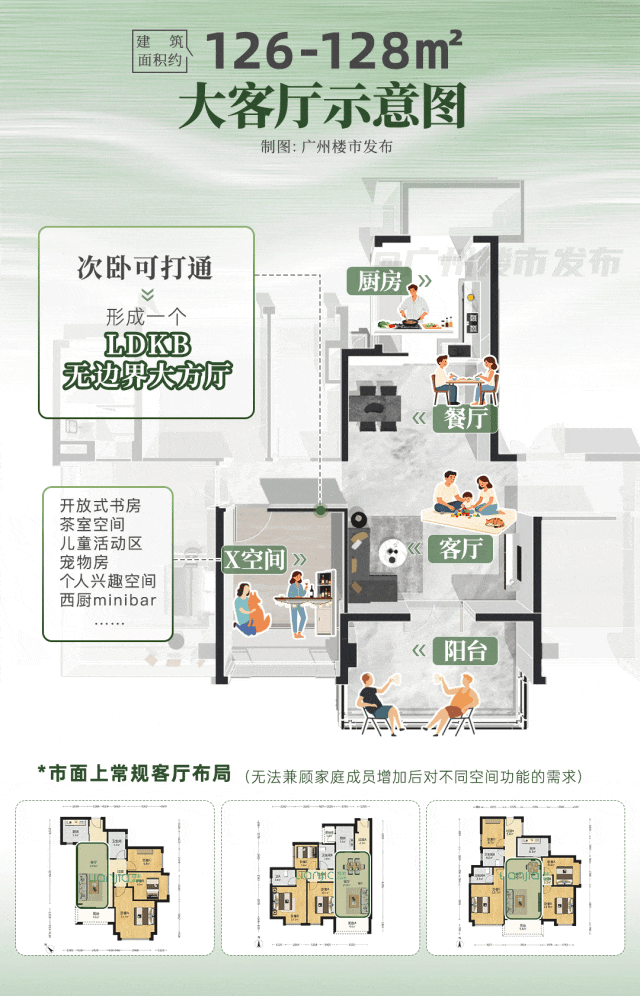 对很多买家来说,买房的居住痛点就是,人多了以后客厅不够用了。