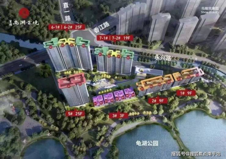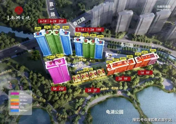 依次为206㎡、207㎡、281㎡、242㎡、281㎡、别墅、小区大门、小区环境、龟湖公园、样板房展示