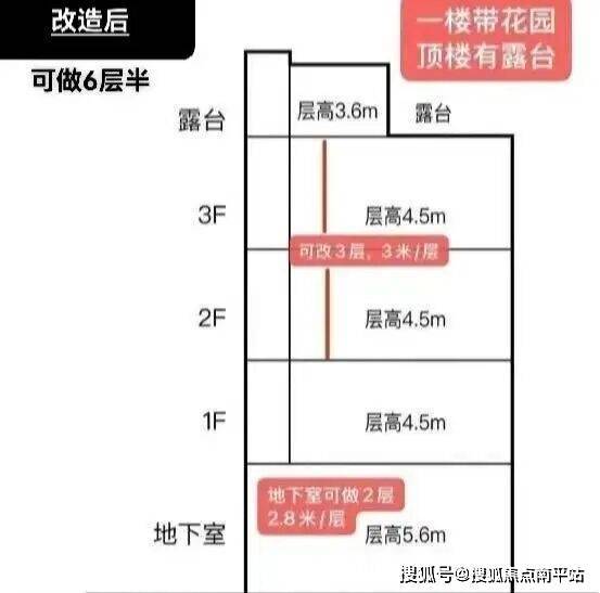 ⚠️改造后🉐6层半空中别墅‼️地下挑高5.6米,地上挑高4.5米