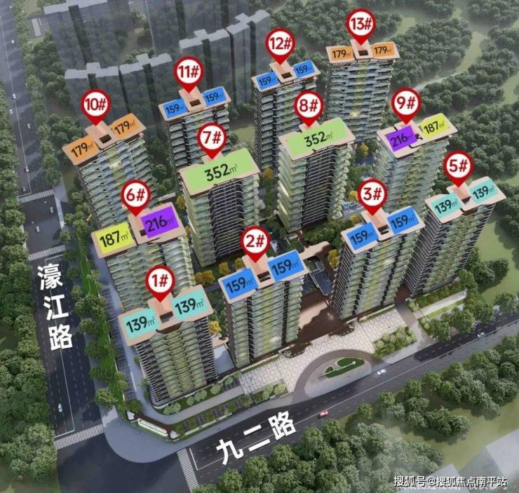 依次为139㎡偶/奇数层、159㎡偶/奇数层、179㎡偶/奇数层、187㎡偶/奇数层、216㎡偶/奇数层、352㎡偶/奇数层