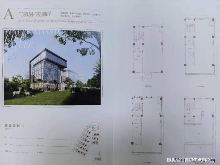 依次为390㎡A、390B㎡、楼盘图、别墅改造前、改造后、别墅外景