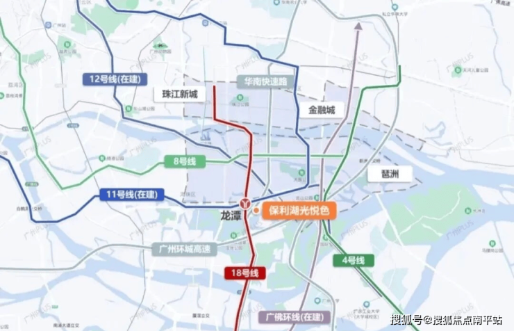 项目距离地铁18号线和在建11号线交汇的龙潭站约600米,从龙潭站出发,到珠江新城、琶洲金融城很近。