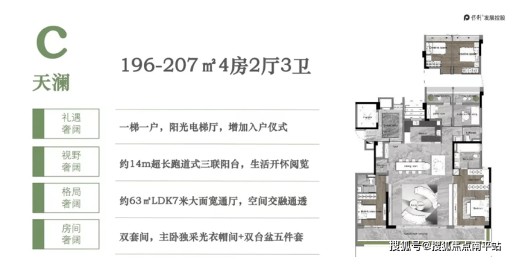 产品:120-140-200㎡全南向四房大平层