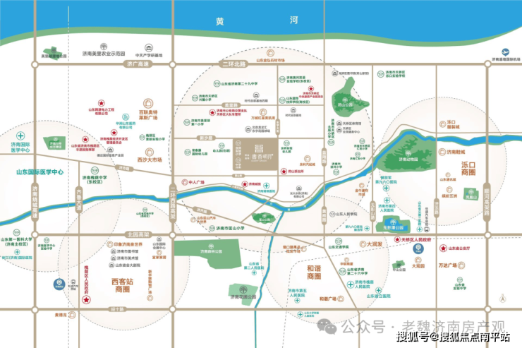 5、医疗:项目往东约三公里为“师范路医疗中心”,汇聚了济南第四人民医院、解放军960医院(原济南军区总医院)及济南中西医结合医院,医疗配套完善,同时项目以西约2公里规划西部国际医学中心,规划建立20余家高端医院。