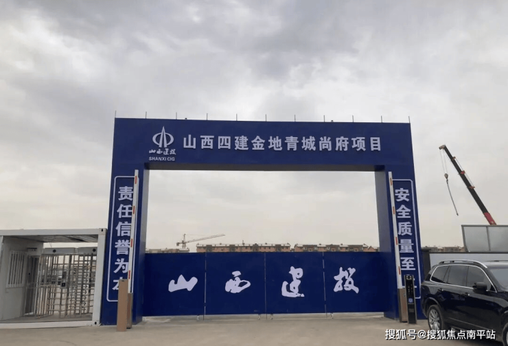 施工场地已经全部完成了临时围合,大门的牌子上对外显示有两家施工总承包单位,山西四建、山西三建。