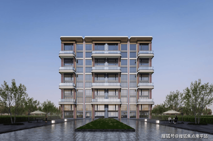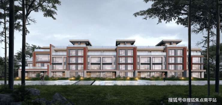 立面采用燕尾山花寓意塑造天际线,让整体建筑形态舒展,大玻璃窗与鎏金线条一气呵成,从土地抽芽向天攀生,让建筑与闽南红土共呼吸,在燕尾脊与天空的对话中,重写厝宅向上生长的当代闽南艺术。立面材料精心选用闽南红釉面陶板及砖红铝板,配合香槟金线条,爱马仕灰石材,多种色调的材质和谐搭配,展现精致大气的立面形象。波浪状陶板在晴朗的午后形成“光斑流动”的动态光影,呼应传统厝内天井日晷般的时间感知,完成“厚重传统”到“轻盈现代”的形态转译。