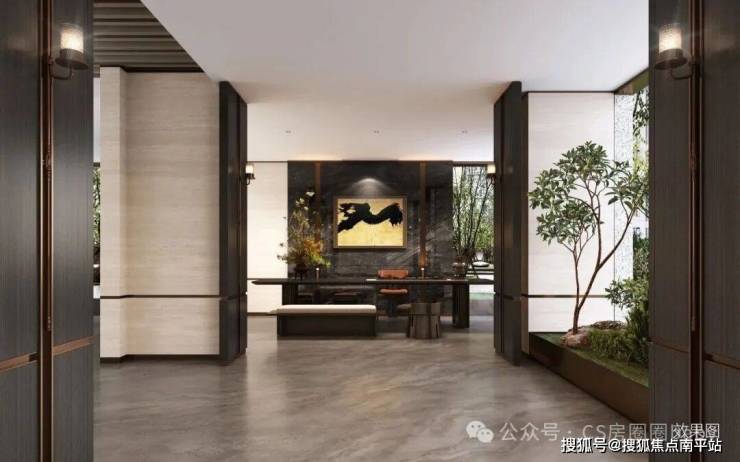 三重臻装入户门楼:地下门厅、首层门厅、私人电梯厅,一进一礼,敬呈归家至高礼序。