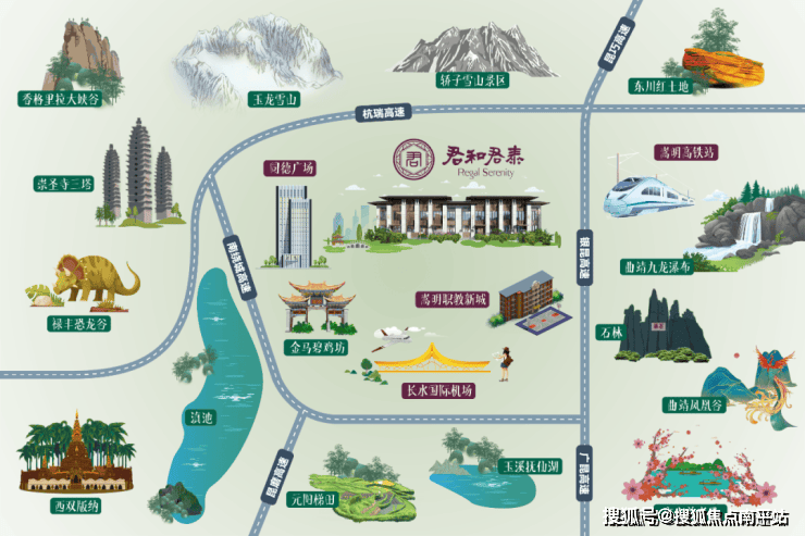 交通配套:项目邻近双向是二车道嵩昆大道,坐拥“一港,两铁,三轨,三高速”。一港指长水机场;两铁指沪昆高铁和渝昆高铁(在建中);;三高速指杭瑞高速、嵩昆高速、绕城高速