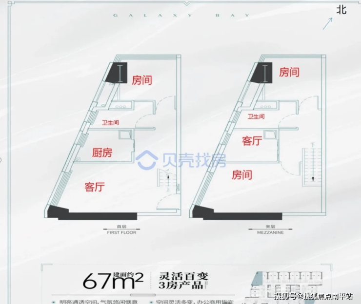 建面约67㎡高赠送2房(可明火)