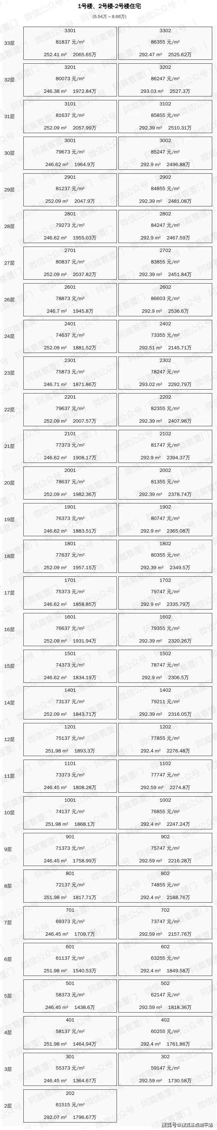一房一价表(阿莫看厦门制图)