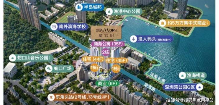 望海玥家园位于蛇口老城区,毗邻半岛城邦、南海玫瑰等豪宅区,享有“二线海景”。南侧老小区部分遮挡海景,少数房源可看海。项目享有蛇口滨海设施,如歌剧院、渔人码头、滨海长廊。