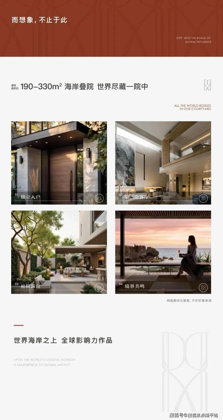 上叠,除独门独院和地下室之外,还专享超大瞰海天台,客厅挑高达到创纪录的7米,并采用了造价高昂的“全面屏玻璃”外立面。