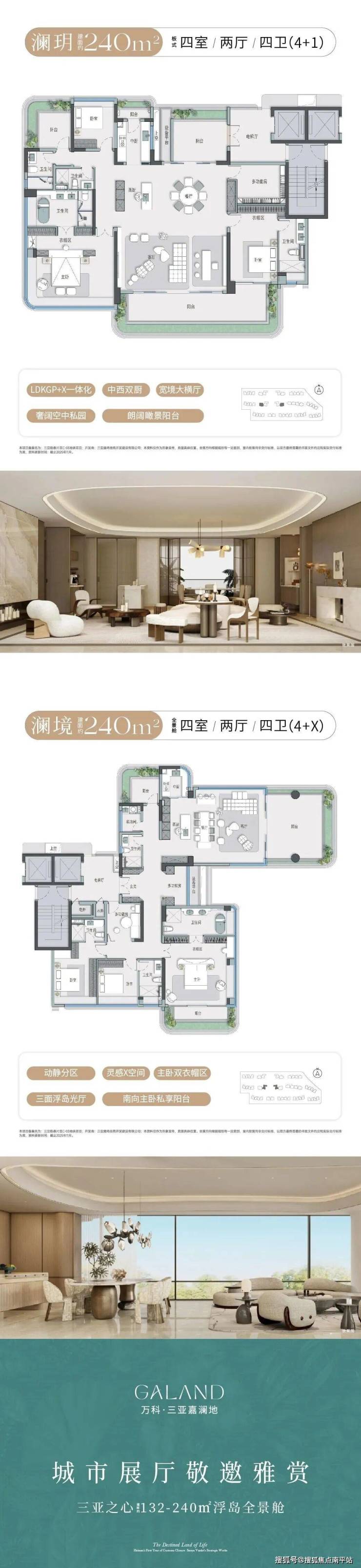 项目是三亚首发类四代宅的创新户型,在产品设计有不少亮点,比如三阳台设计,入户庭院花园打造;再比如全景舱设计,做到U型三面采光,比传统L型多一个景观面。