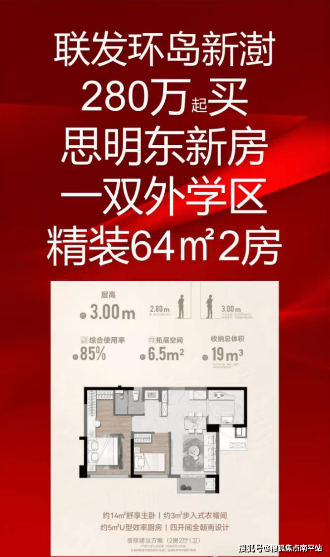 思明前埔新盘—联发环岛新澍,传最新消息,64㎡学区房精装2房总价280万起。