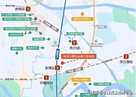 项目坐落于广州中心城区海珠区之心,华洲路旁,西侧为广州海珠湿地公园,南侧邻石榴岗河,距离地铁11号线(在建)和18号线换乘的石榴岗站约1200米,距离琶洲南TOD不到两公里。