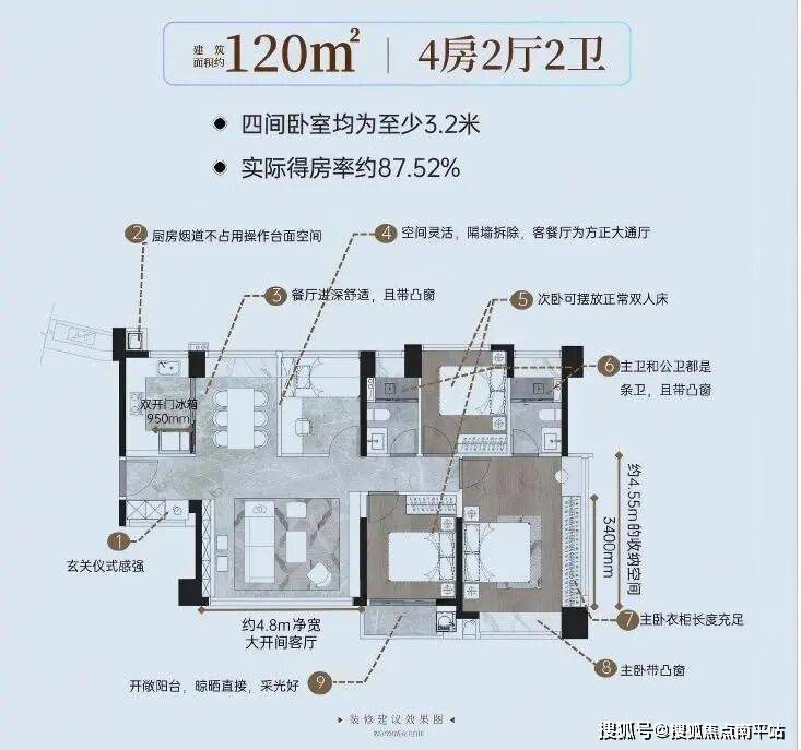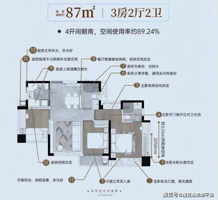 身为厦门飘窗赠送鼻祖,云启东方综合使用率高达87-89%,不仅比新规前同类产品的75%使用率多12-17%,约87平3房媲美市面约98平户型,约108平4房相当于市面约120平,约120平更完胜市面约135平!比起如今的迭代新品85-88%使用率,依旧胜出1-4%。