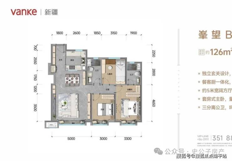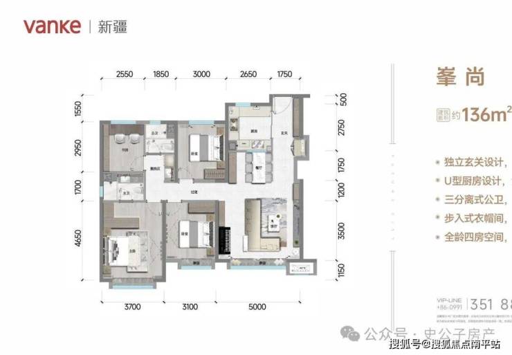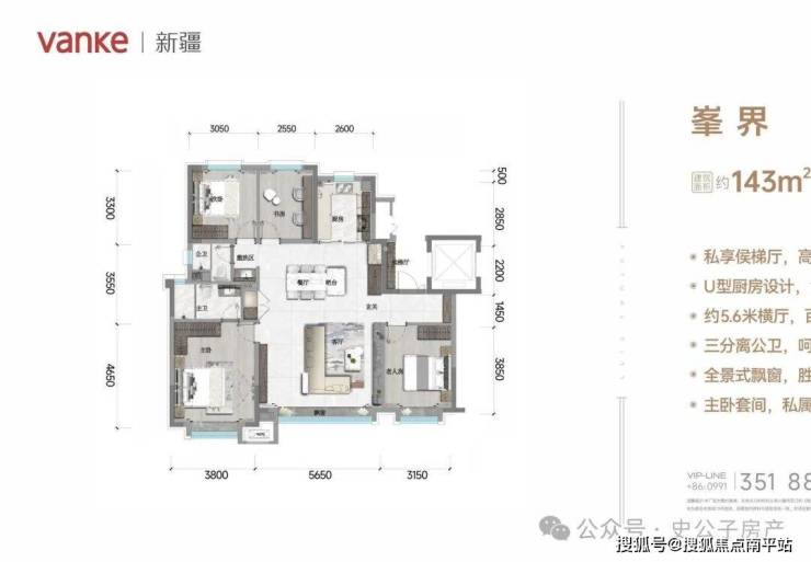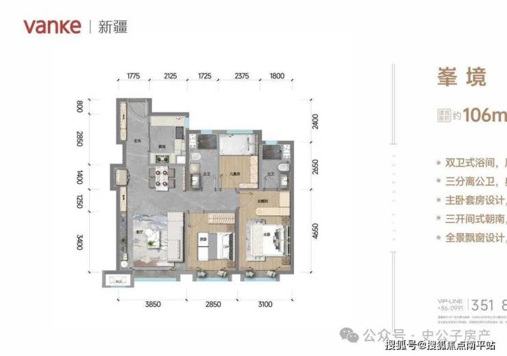 【北廊户型】创新新疆万科首个北连廊户型;南北通透、三面宽采光。
