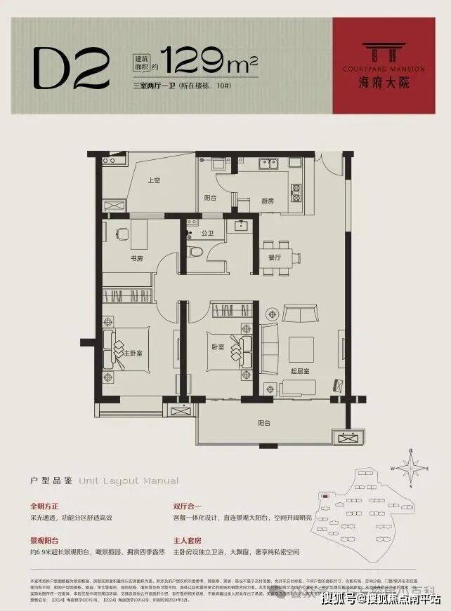海府大院以新中式风格,珍罕的板式建筑,正南正北布局,面面向阳,光线涵养生活每一寸空间,户户可观景,层层可凭栏,至阔楼间距更将胜景一览无余。