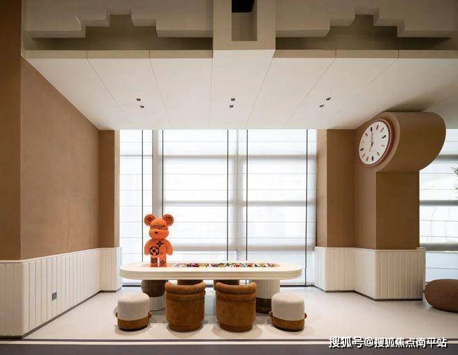 架空层会所内设置了儿童区、书吧、咖啡区、下沉式喷泉广场等多个功能区域,满足不同年龄段业主的需求。儿童区采用软包防撞设计,与园林景观无缝衔接,为孩子们提供了一个安全、有趣的玩耍空间。书吧引入自然采光,毗邻社区图书馆,为业主提供了一个安静、舒适的阅读环境。咖啡区毗邻花园,设置户外座椅,成为业主会客、休闲的“第二客厅”。下沉式喷泉广场则作为社区的公共空间,为邻里生活提供了更多的交流机会。
