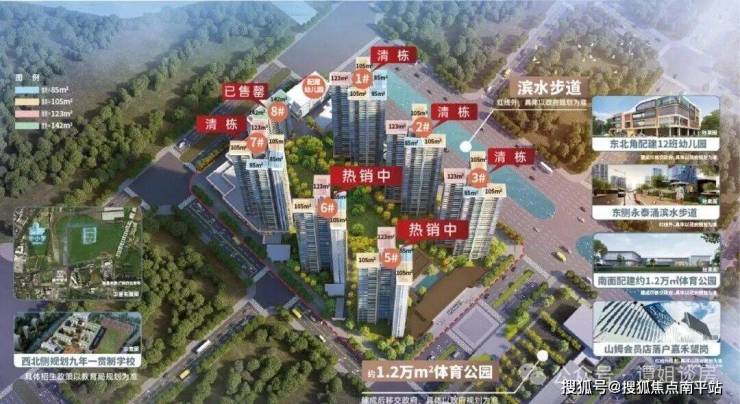 项目除了内部建有舒适园林外,南侧即门口还规划有约1.2万方的体育公园和东部规划有永泰滨涌水步道