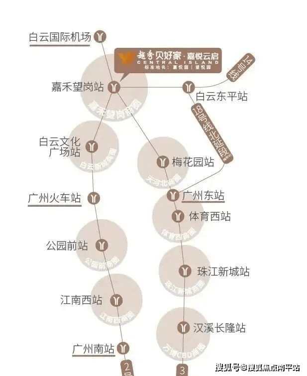 2、通达性之王, 这里是轨道无缝连接的典范,是人口流动、资源交换的关键节点。通过嘉禾望岗枢纽,可以0换乘联通广州四大超级枢纽: 白云机场、广州南站、广州火车站、广州东站。