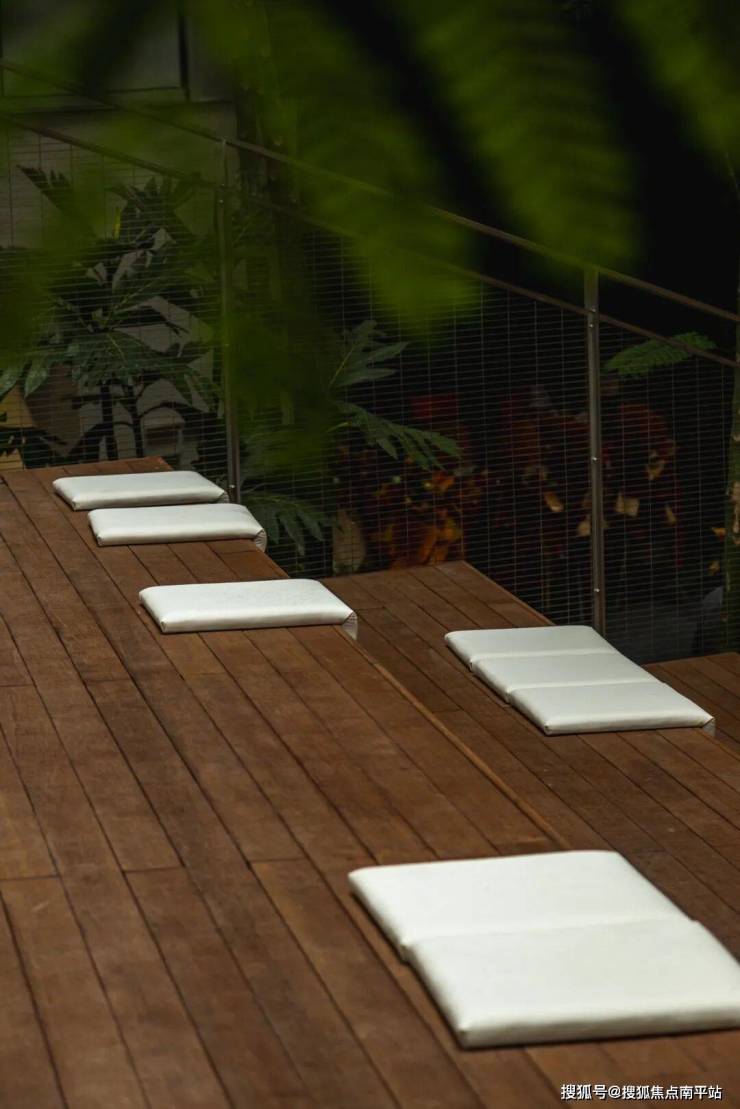 雨林中庭,大庄竹材阶梯与建筑立面和谐统一。竹材为精心设计的高差增添别样韵味,让开放的中庭成为社区温馨活动的核心。无论是欢乐的露天电影,还是热闹的乐队演出,亦或是居民日常的休闲时光,都因竹材的存在更具自然温情。