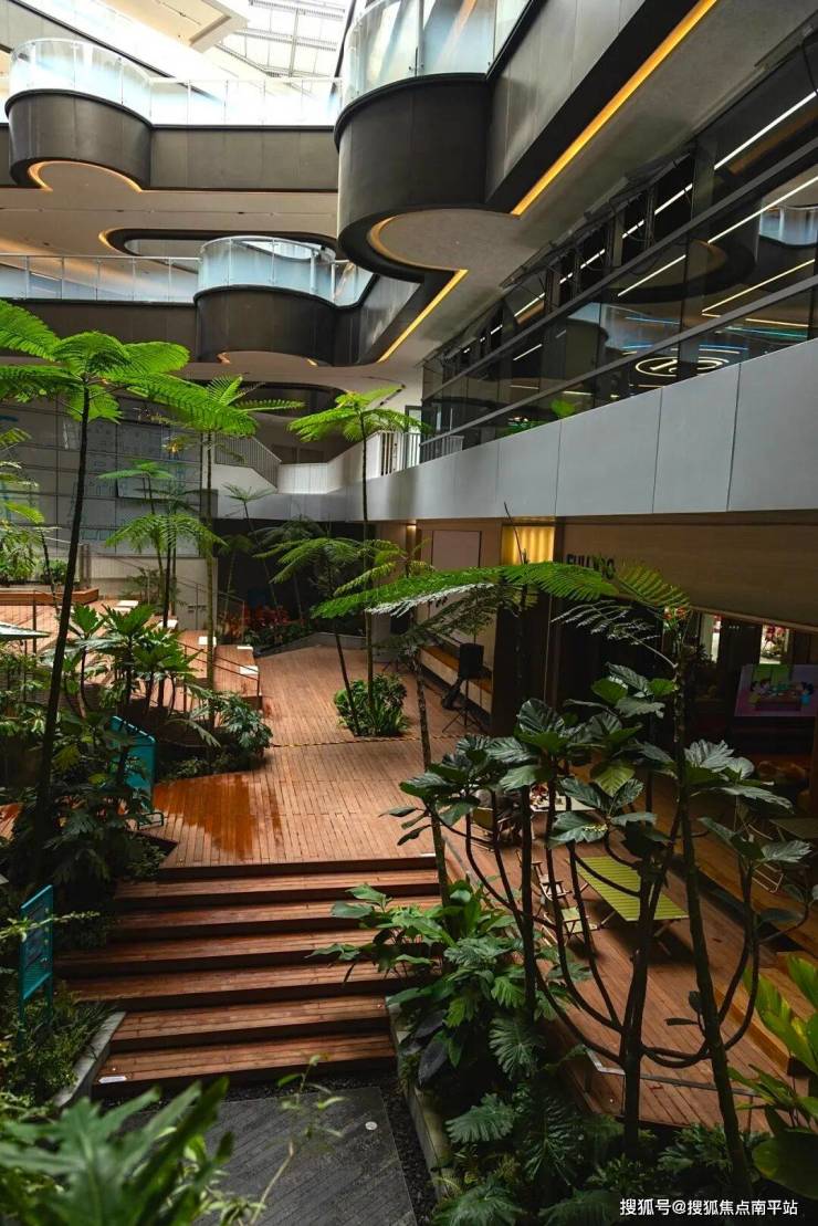 踏入东岸麓洲,仿若步入热带梦幻之境。在这里,商业空间与自然完美交织。森林湖泊环绕的 “玻璃盒子” 中,户外竹木地板与墙板随处可见。竹材与海芋、面包树等绿植相得益彰,砗磲点缀其中,巧妙隔开外界喧嚣,带您轻松步入宁静商业天地。