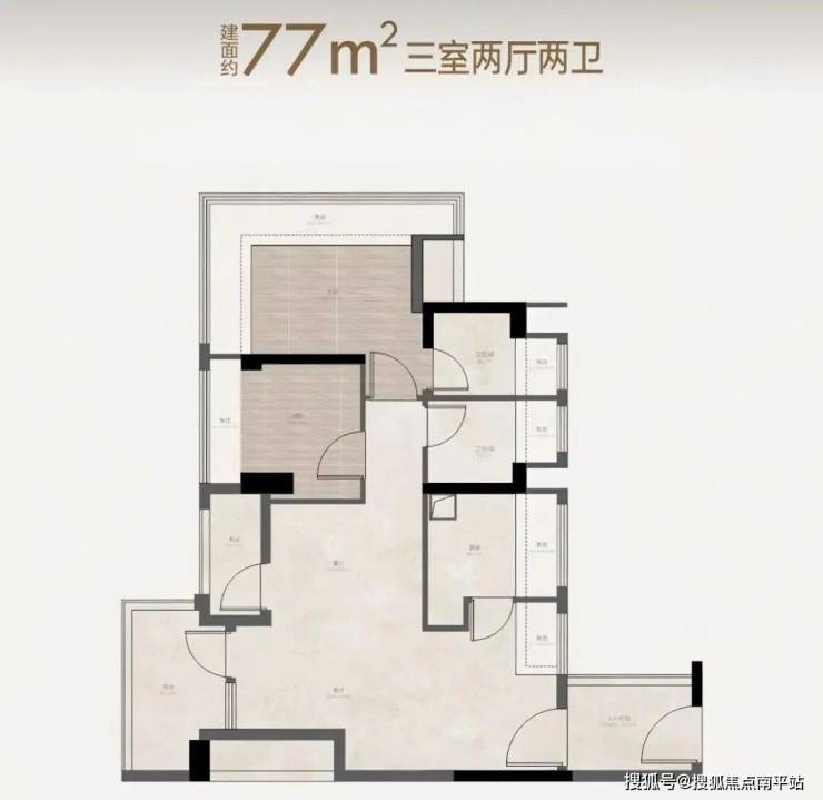 国贸·保利|海上印主打小户型, 最小建面约77㎡就能做三房, 还带有入户花园。