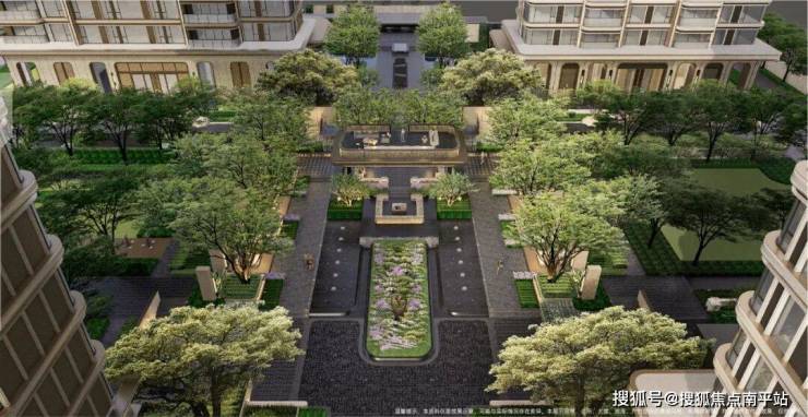 进入小区内,以一条约330米中轴园林,贯通南北双园,打造「三进五院」的归家礼序,中式对称美学处处可见。主入口高约10米、宽约56米,足够恢弘大气,放眼广州,仅此一家!