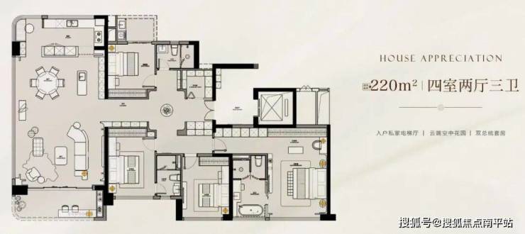 【产品配置】北区2T3/3T4塔楼,南区2T2板楼,建面约120-140-170-210㎡云幕平层