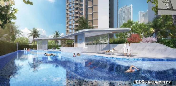 内享1.5万㎡围合式中央大花园,配置城市客厅、泳池、儿童乐园、运动球场、富氧跑道等。