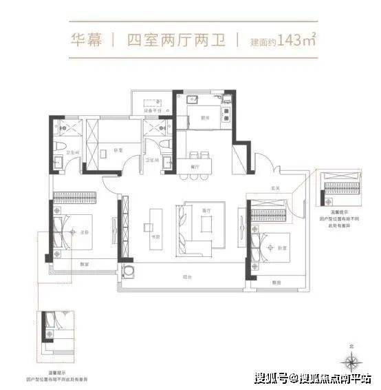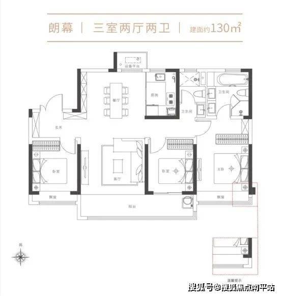 次卫干湿分离, 270°观景阳台,拐角飘窗