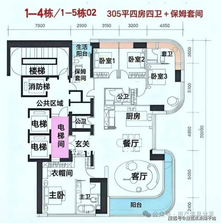 项目将会开放302㎡和370㎡两个户型,首推E栋的302㎡