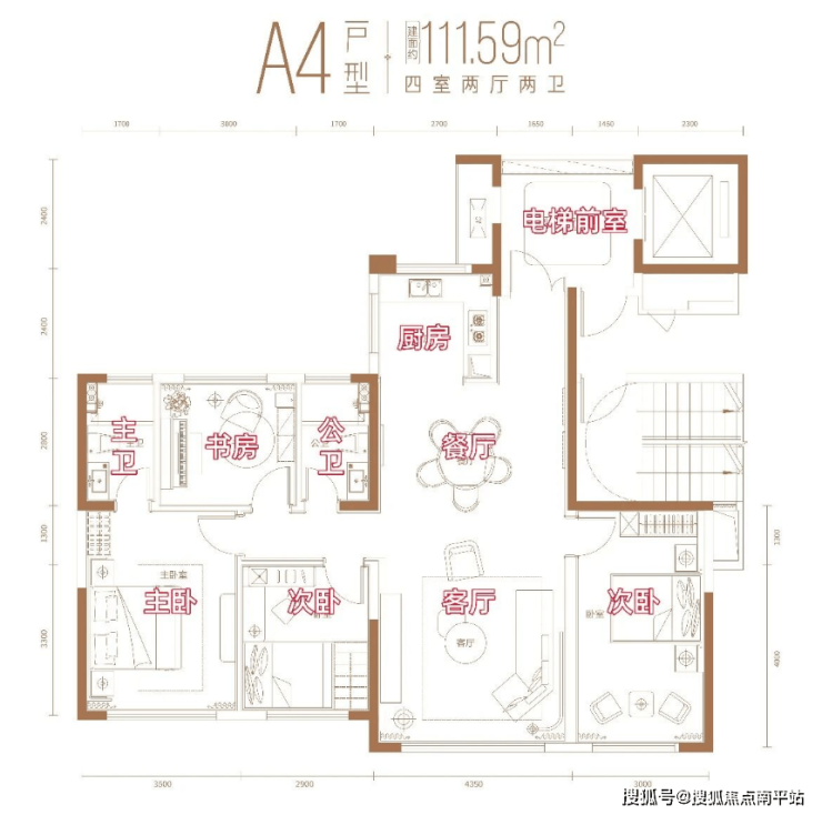 建面约112㎡:4房2卫
