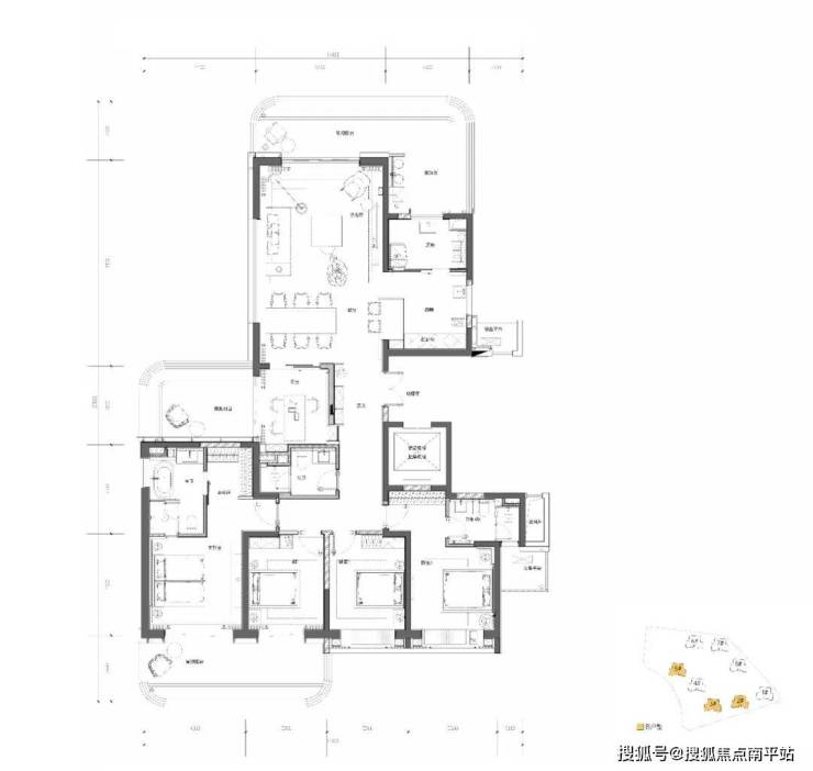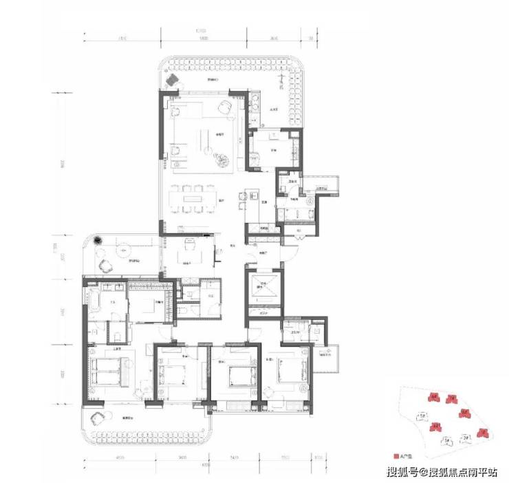 A户型:约291.44-293.18㎡ 五房三厅四卫
